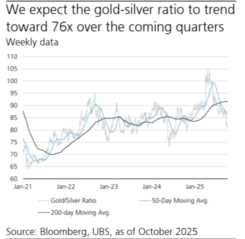 Despite gold’s premium, silver is increasingly viewed as undervalued relative to its historical norm. Industrial demand—especially from electronics and photovoltaic applications—continues to drive interest. ETF holdings in silver are expected to climb back to previous highs, with the gold-silver ratio likely returning to below 76x as investment strength increases.